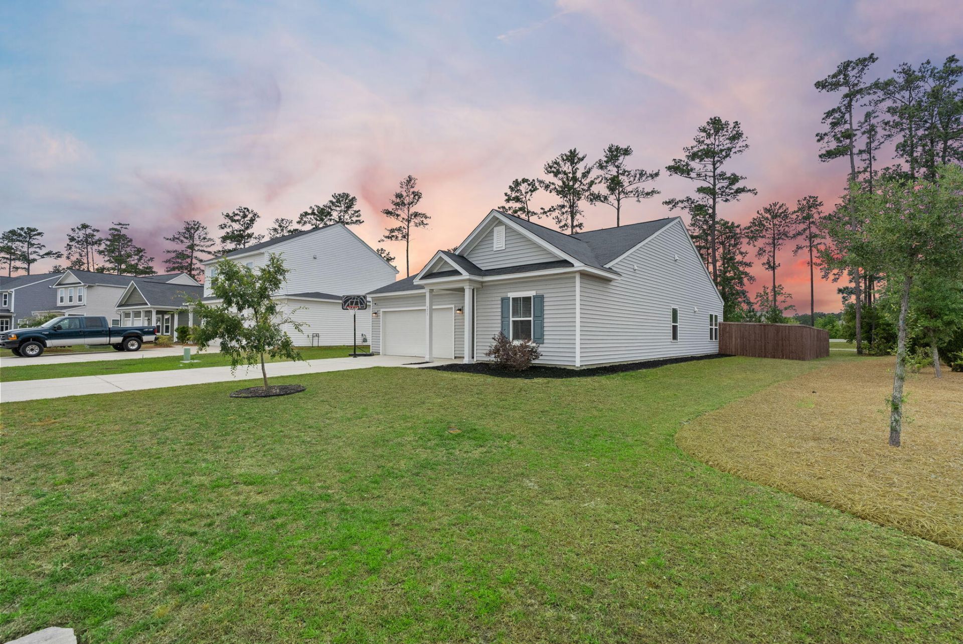 Welcome to 171 Lucca Drive, a beautiful ranch-style 3-bedroom, 2-bathroom home located in the highly sought-after Woodwinds at Cane Bay.From the moment you arrive, the spacious yard and open green space surrounding the home create a warm and inviting first impression. Step inside to a welcoming foyer that sets the tone for the home's thoughtful, functional layout. Just off the entry, you'll find two guest bedrooms and a full guest bathroom, offering separation and privacy from the primary suite.As you continue through the home, the floor plan opens seamlessly into a light-filled living area designed for both everyday comfort and effortless entertaining. At the heart of the home is a beautifully appointed kitchen featuring crisp white cabinetry, granite countertops, and a timeless whiteherringbone subway tile backsplash. Stainless steel appliances, upgraded gold cabinet hardware, and a shiplap-accented center island create a space that is both stylish and functional. Just off the kitchen, the eat-in dining area provides additional room for casual meals or hosting, complete with a beautiful upgraded light fixture.The main living space is filled with natural light and features a cozy fireplace, creating the perfect spot to unwind at the end of the day or enjoy a quiet morning cup of coffee. Step outside to your covered patio overlooking a large fenced-in backyard with a privacy fence and peaceful tree-lined views.The primary suite offers a private retreat with backyard views and a well-appointed en suite bathroom featuring a tiled walk-in shower with a bench seat, double vanities, and dual closets.Located within the vibrant Woodwinds at Cane Bay community, residents enjoy exceptional amenities including scenic walking trails, a resort-style pool, playground, fire pit, and miles of wooded paths. Conveniently situated near the Cane Bay Family YMCA, Publix, dining, shopping, and Cane Bay schools, this home offers comfort, style, and convenience in one of the area's most desirable communities.